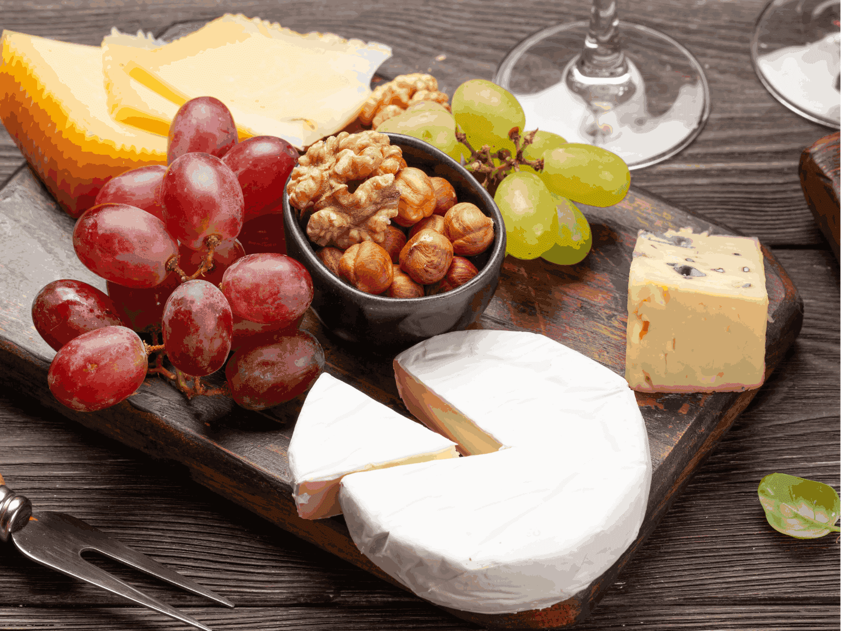 Bottle of wine and gourmet cheese platter