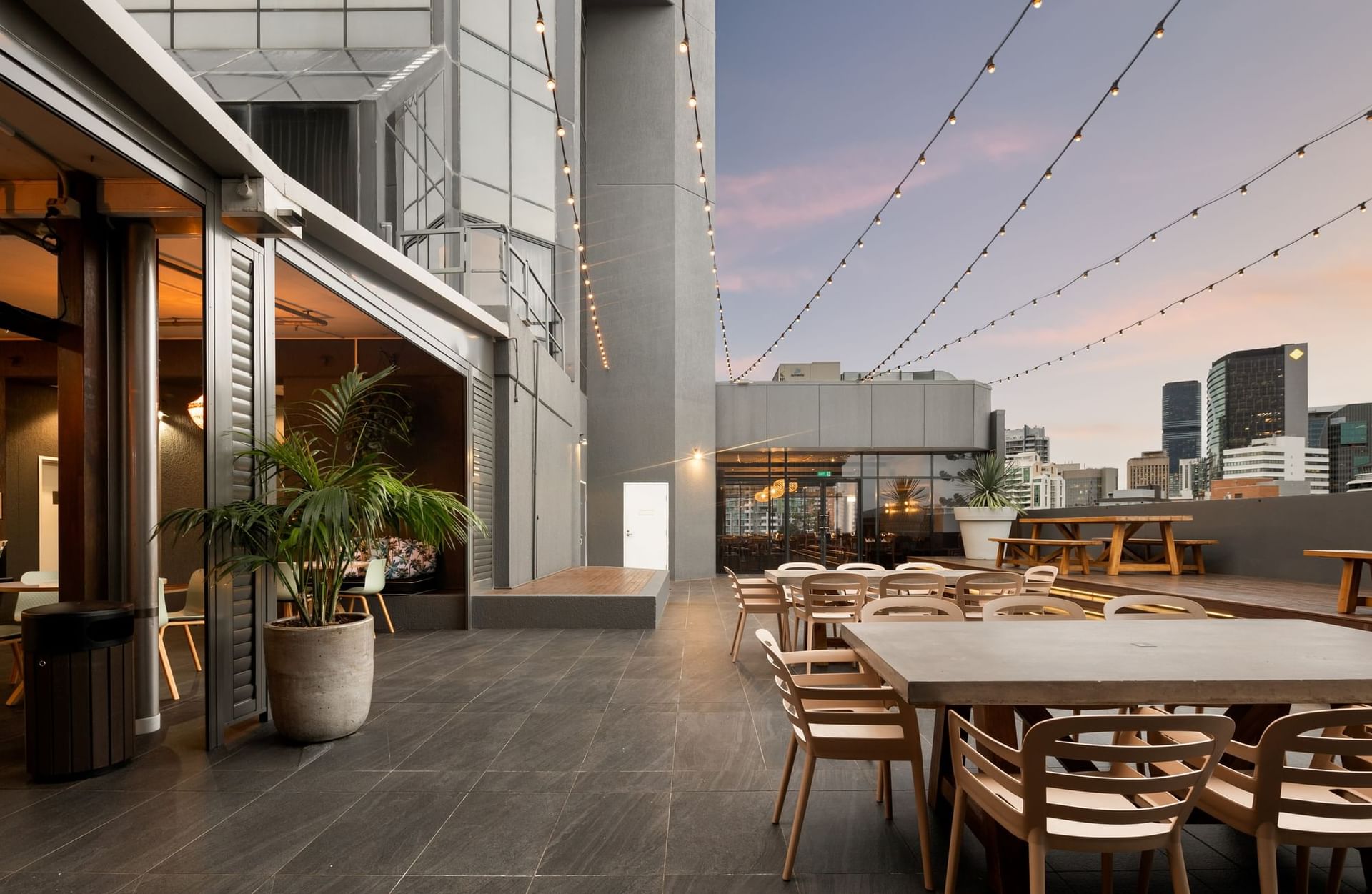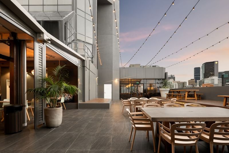 Courtyard Ceremony in Wedding Venue with a city view at Grand Chancellor Brisbane