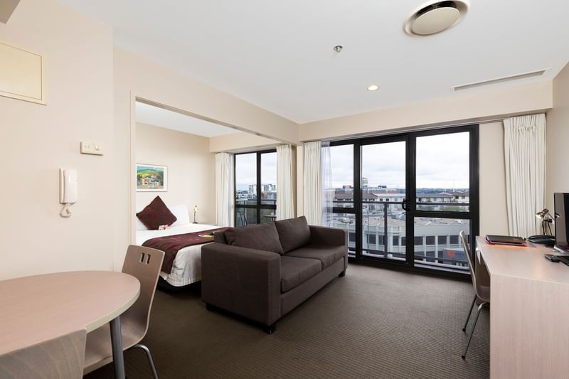 Spread out and unwind in the spacious 43-square-metre City View Studio Apartment, offering captivating city views from the room or balcony.